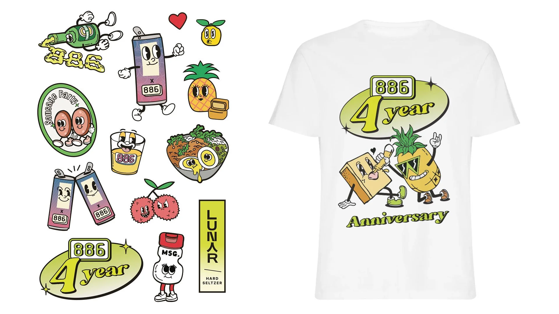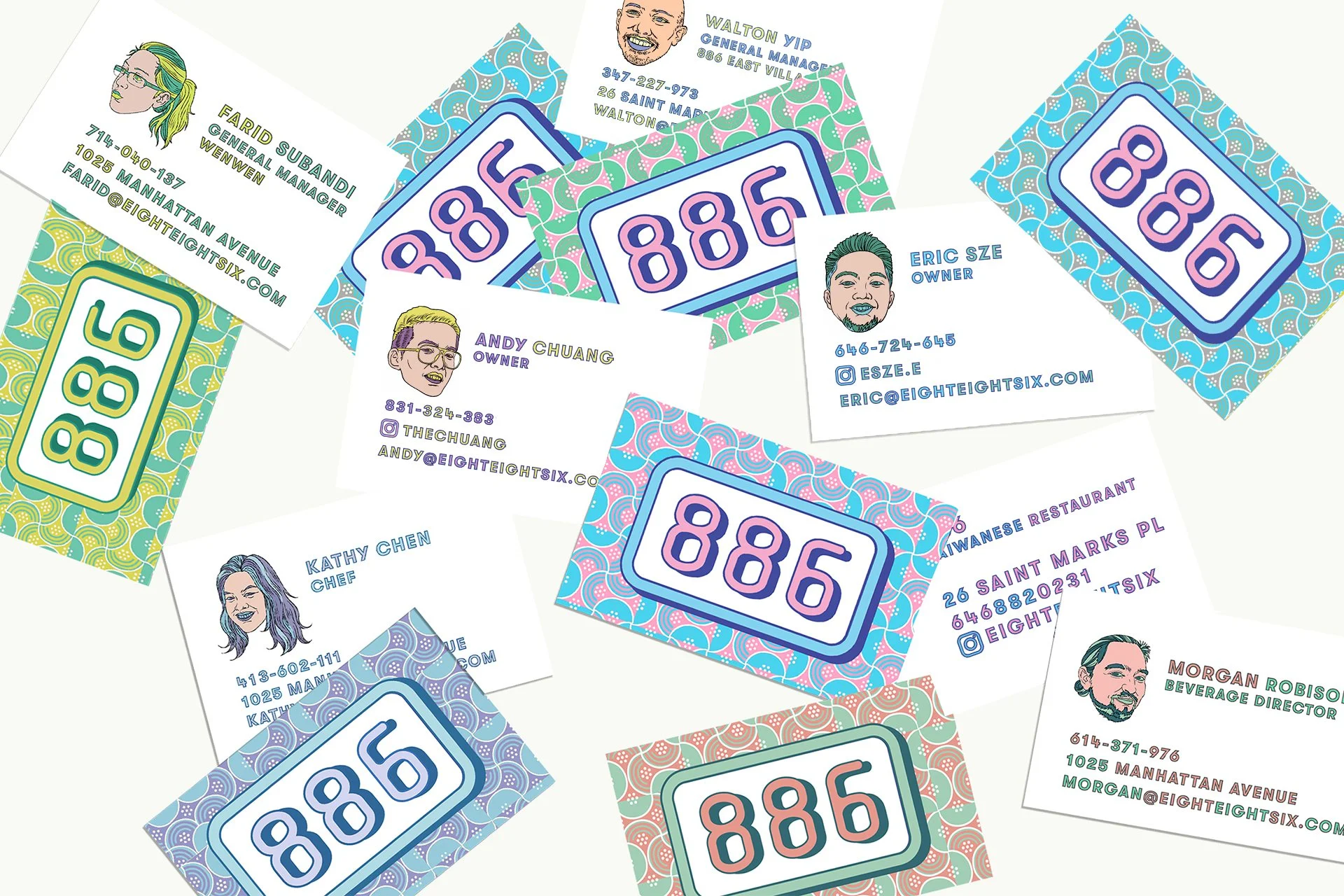 Branding / Interior Graphics EightEightSix is a new Taiwanese restaurant in East Village, New York City. The restaurant puts a modern spin on Taiwanese food while still providing authentic choices for others. Aligning with the owners vision of using neon lights to create a retro environment, bright yet soft colors were used for the logo.